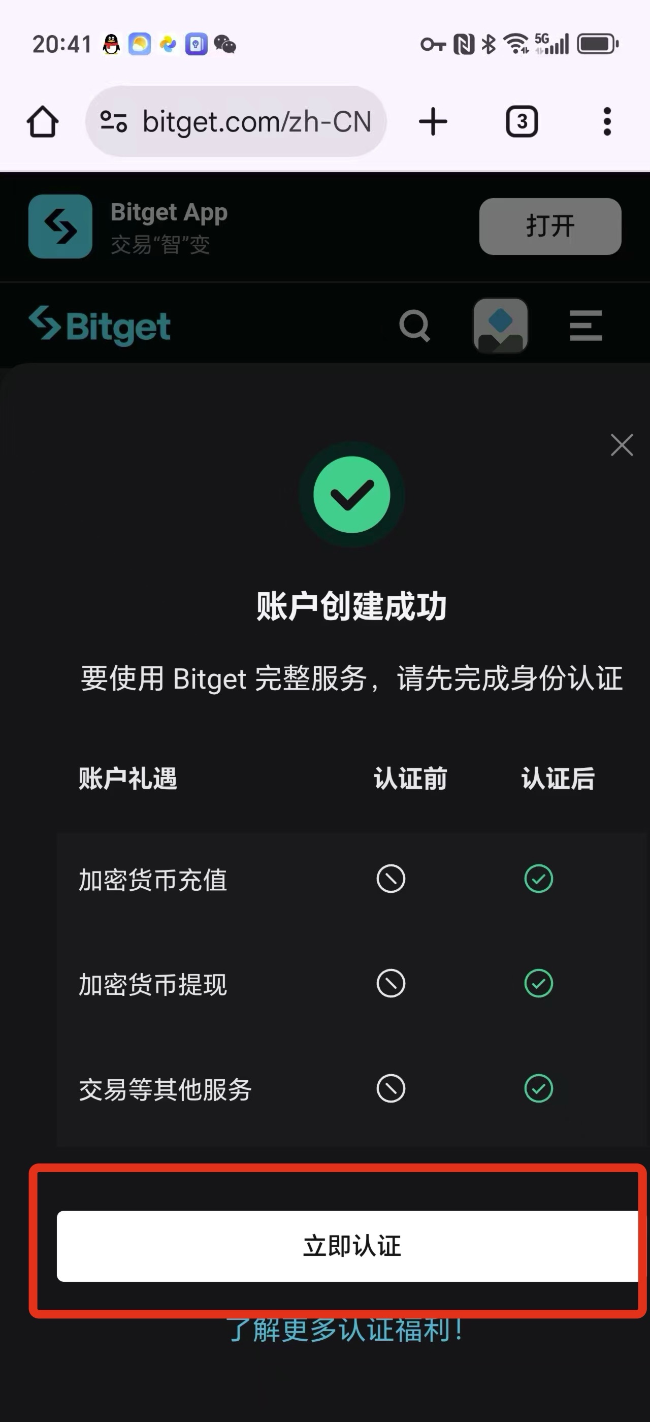 - 按提示完成邮箱验证,即可完成 Bitget 账户的初步注册。