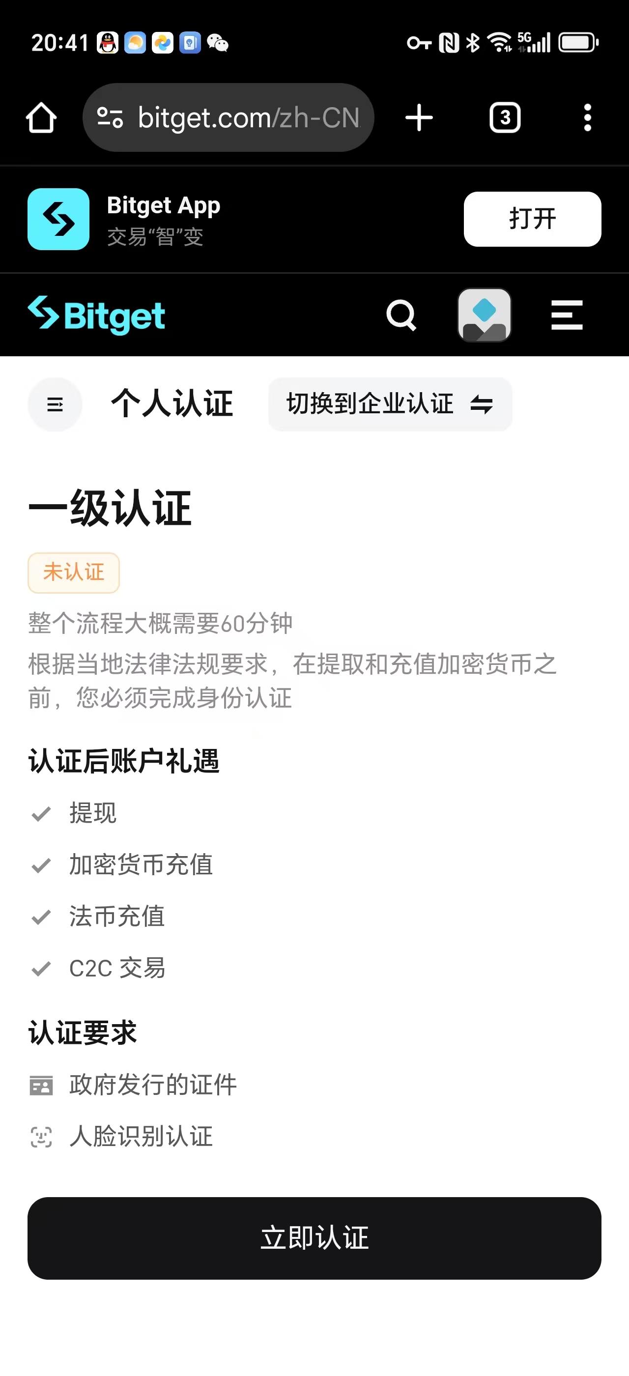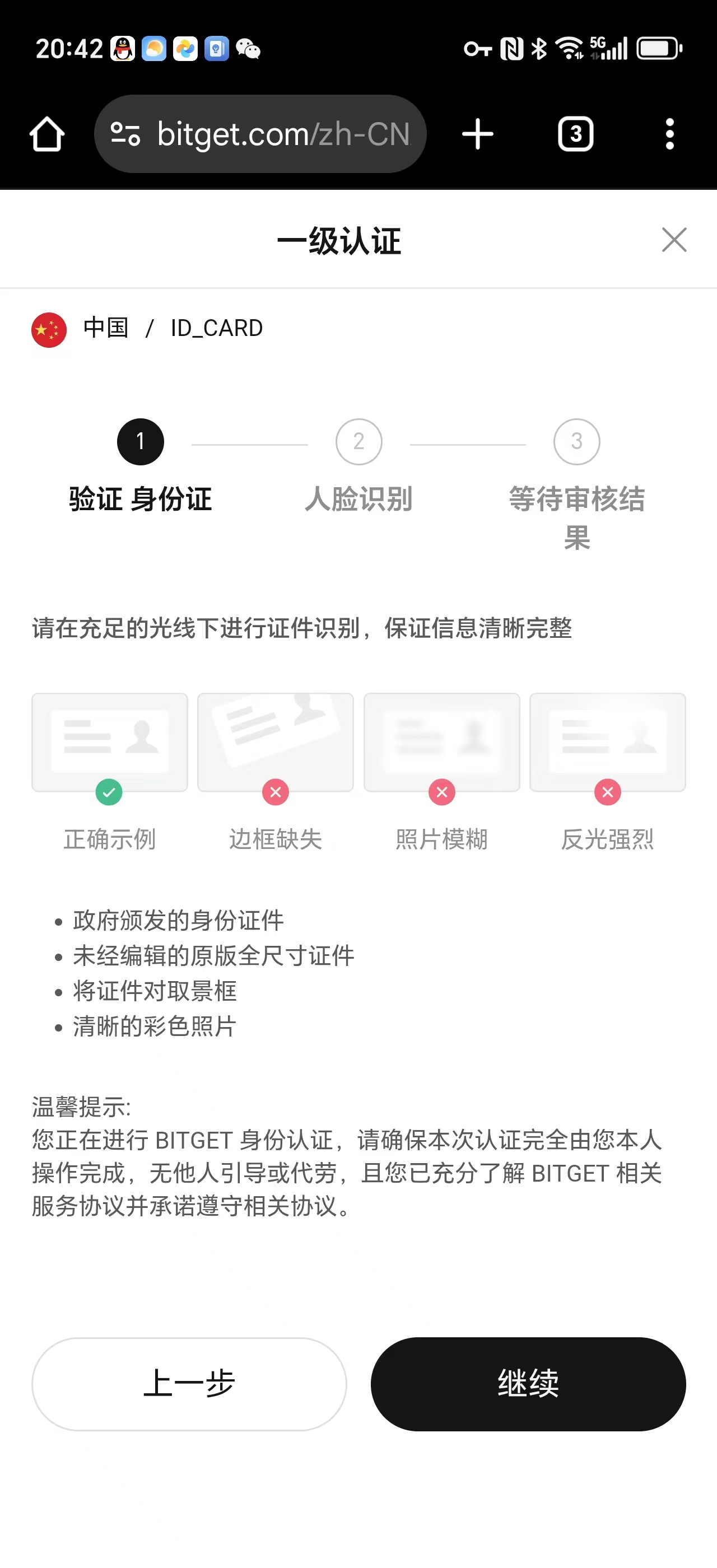进行身份认证(KYC):为了提升账户安全性和交易限额,请上传身份证等资料完成 实名认证(KYC):