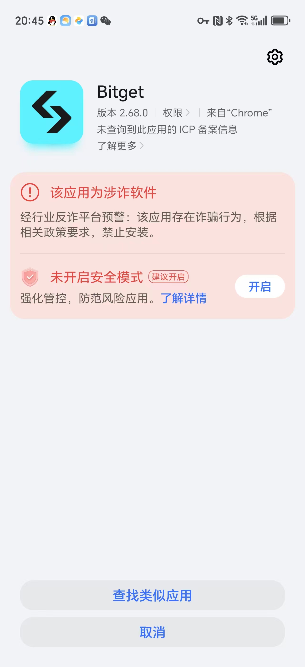 安卓手机安装加密货币 App 的难点在于国产手机的安全系统会将其识别为风险应用并拦截。